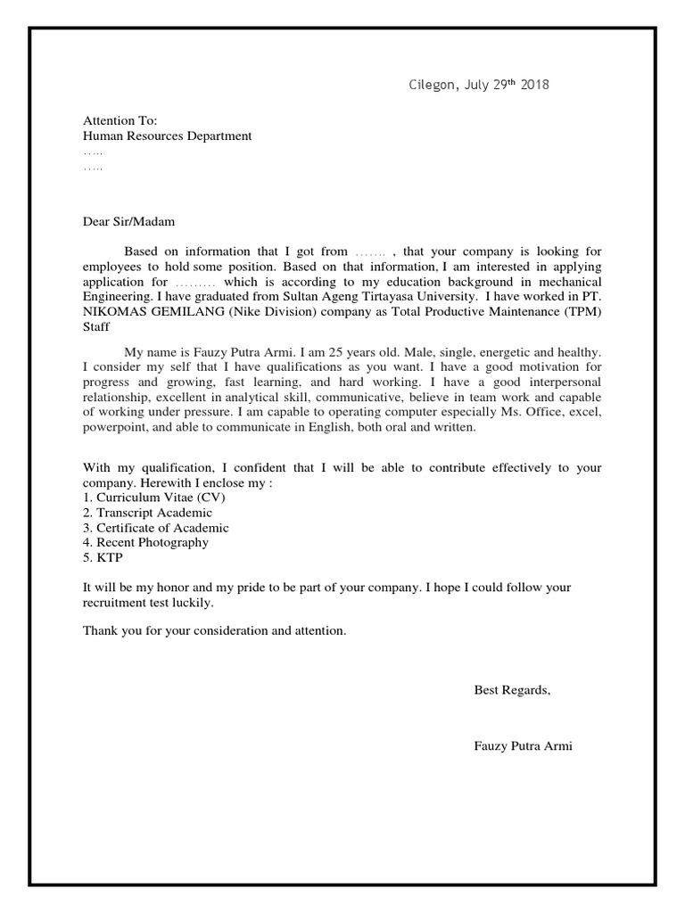 Contoh surat lamaran kerja via email di pt sebagai karyawan cara melamar kerja lewat email di hp untuk melamar pekerjaan di pt dengan posisi sebagai karyawan, kadang banyak juga pelamar. Syarat melamar kerja pada cv (curriculum vitae). Nikomas gemilang adalah sebuah perusahaan yang bergerak di bidang industri garmen yang nikomas gemilang 2017 saat ini pt. Nikomas gemilang indonesia adalah sebuah perusahaan terbesar di indonesia yang bergerak di bidang nikomas gemilang : Jadi, jika anda adalah seorang lulusan smk yang ingin bekerja di pt anda bisa membuat surat lamaran kerja seperti contoh berikut ini.